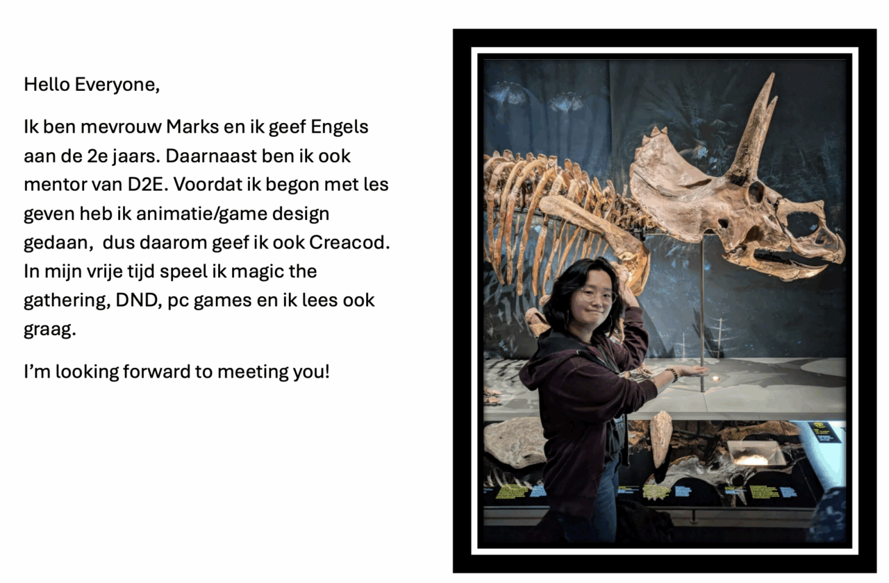 Ik kijk ernaar uit om jullie te leren kennen en samen aan de slag te gaan!